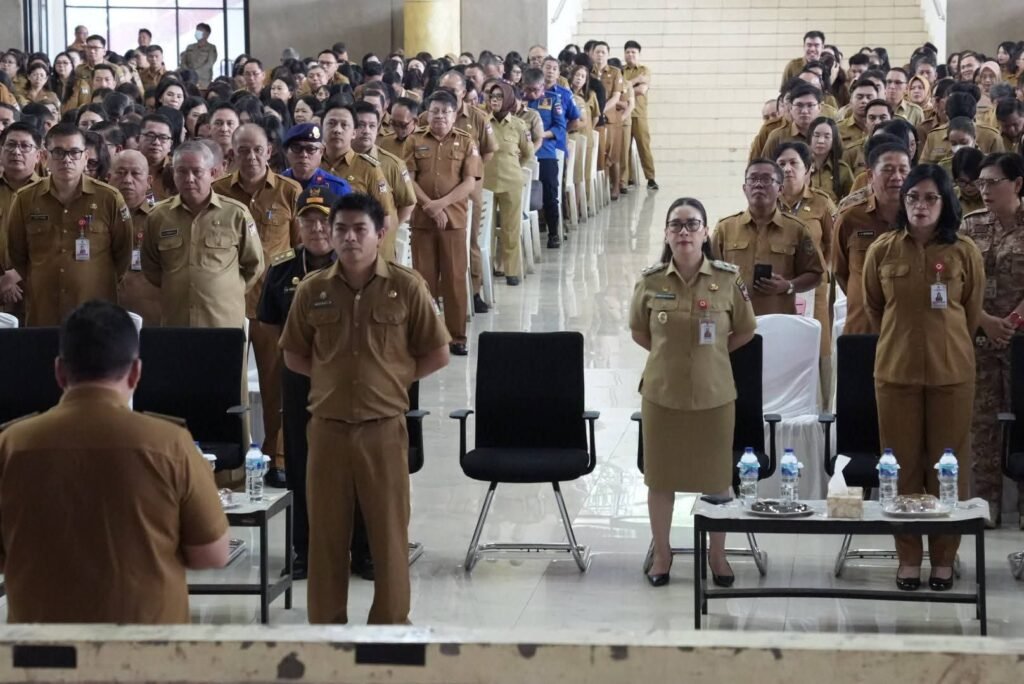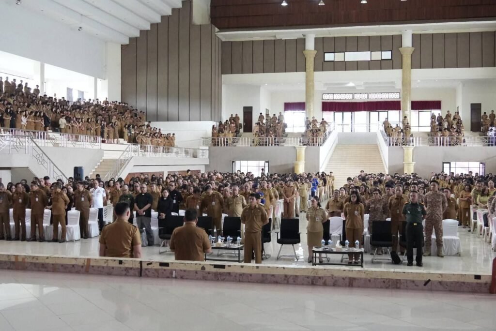 Caritasulut.com, Minahasa – Mengawali kalender kerja tahun 2026, Pemerintah Kabupaten (Pemkab) Minahasa menggelar Apel Perdana yang dirangkaikan dengan Ibadah Oikumene di Gedung Wale Ne Tou, Senin (5/1). Kegiatan ini dipimpin langsung oleh Bupati Minahasa, Robby Dondokambey, SSi, MAP, sebagai momentum penguatan komitmen pelayanan publik bagi seluruh jajaran aparatur sipil negara.
