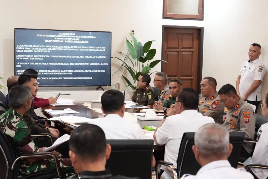 Caritasulut.com, Minahasa — Bupati Minahasa Dr. Robby Dondokambey, S.Si, MAP, didampingi Wakil Bupati Minahasa Vanda Sarundajang, SS, memimpin Rapat Forum Koordinasi Pimpinan Daerah (Forkopimda) Kabupaten Minahasa yang digelar di Ruang Rapat Bupati Minahasa, Rabu (25/2/2026).