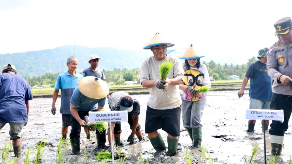 Caritasulut.com, Bolmong – Dukung swasembada pangan, Gubernur Sulawesi Utara (Sulut) Yulius Selvanus Komaling (YSK) tanam padi di Desa Solog, Kabupaten Bolaang Mongondow (Bolmong), Jumat (23/1/2026).